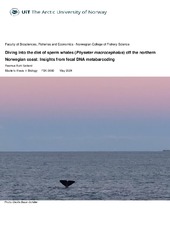 (Master thesis; Mastergradsoppgave, 2024-05-15)Sperm whales are elusive creatures; they spend much of their time out of sight, deep in the oceans. This makes them difficult to study, and previously, studies of their diet have mainly been stomach content analyses of stranded or caught individuals. However, DNA metabarcoding has the potential for solving this problem. This thesis examines the diet of sperm whales in the Norwegian Sea, of which we ... -
