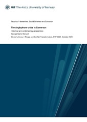 (Master thesis; Mastergradsoppgave, 2021-10-28)The historiography of the “Anglophone Problem” has drawn a lot of ink from Cameroonian historians, lawyers, politicians, and scholars. This is because an Anglophone in the Cameroonian context is not necessarily a Cameroonian who speaks or writes English, or who is imbibed with the Anglo-Saxon culture. Cameroonians are confronted with who an Anglophone is, what is the Anglophone problem, the origin ... -