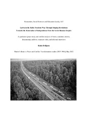 (Mastergradsoppgave; Master thesis, 2022-05-15)The aim of this master's thesis research paper has been to reflect on the conceptual and theoretical framework of peace studies and practice research through examining the context behind the late 1980s Baltic states independence movements also known as "The Baltic Freedom Way" and "Singing Revolutions". The chosen and compiled conceptual and theoretical framework representing selected peace studies ... -