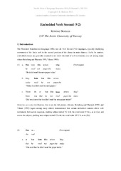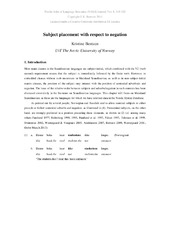 (Journal article; Tidsskriftartikkel; Peer reviewed, 2017-08-22)Most main clauses in the Scandinavian languages are subject-initial, which combined with the V2 (verb second) requirement means that the subject is immediately followed by the finite verb. However, in embedded clauses without verb movement in Mainland Scandinavian, as well as in non-subject-initial matrix clauses, the position of the subject may interact with the position of sentential adverbials ... -