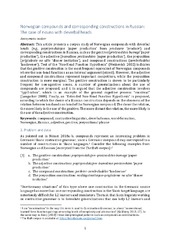 (Journal article; Tidsskriftartikkel; Peer reviewed, 2022-05-03)This article presents a corpus study of Norwegian compounds with deverbal heads (e.g., papirproduksjon ‘paper production’ from produsere ‘produce’) and corresponding constructions in Russian, such as the genitive (proizvodstvo bumagi ‘paper production’), the adjective (bumažnoe proizvodstvo ‘paper production’), the preposition (priglašenie na užin ‘dinner invitation’), and compound constructions ... -