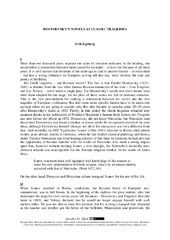 (Journal article; Tidsskriftartikkel; Peer reviewed, 2014-11-16)Friedrich Nietzsche’s treatise “Die Geburt der Tragödie aus dem Geiste der Musik” (1872) has, with the symbolist poet and critic Vyacheslav Ivanov as an important intermediary, exerted a strong influence on Dostoevsky scholarship which can be traced up to this day. The present short paper discusses some aspects of this tradition of interpretation. -
