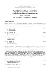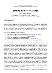 (Journal article; Tidsskriftartikkel; Peer reviewed, 2014-08-22)There is a fair amount of variation between and within the Scandinavian varieties with respect to binding, anaphors and coreference restrictions on pronouns and noun phrases. The variation between the languages has been discussed and analyzed in e.g. Holmberg and Platzack (1995) and Thráinsson (2008), and more finegrained variation within the languages has been discussed by e.g. Tania Strahan ... -