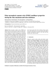 (Journal article; Tidsskriftartikkel; Peer reviewed, 2024-11-11)Polar mesospheric summer echoes (PMSEs) are radar echoes that are measured in the upper atmosphere during the summer months and that can occur in several layers. In this study, we aimed to investigate the relationship between PMSE layers ranging from 80 to 90 km altitude and the solar cycle. We investigated 230 h of observations from the EISCAT very high frequency (VHF) radar located near Tromsø, ... -