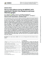 (Journal article; Tidsskriftartikkel; Peer reviewed, 2024-07-09)Precise measurements of Arctic sea ice mass balance are necessary to understand the rapidly changing sea ice cover and its representation in climate models. During the Multidisciplinary drifting Observatory for the Study of Arctic Climate (MOSAiC) expedition, we made repeat point measurements of snow and ice thickness on primarily level first- and second-year ice (FYI, SYI) using ablation stakes and ... -