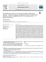 (Journal article; Tidsskriftartikkel; Peer reviewed, 2023-10-24)Molecular and cellular aspects of the autoimmune pathophysiology in SLE is linked to the “The causality principle”. SLE Classification Criteria identify per definition disease measures (here: synonymous with classification criteria), but not diagnostic criteria within a classical framework. These two mostly theoretical criteria collections represent a salient conflict between phenomenology and the ... -