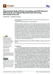 • Experimental Study of Power Generation and COD Removal Efficiency by Air Cathode Microbial Fuel Cell Using Shewanella baltica 20
