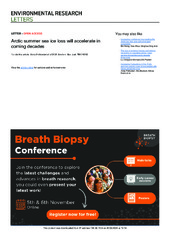 (Journal article; Tidsskriftartikkel; Peer reviewed, 2024-06-17)The Arctic sea ice (ASI) is expected to decrease with further global warming. However, considerable uncertainty remains regarding the temperature range that would lead to a completely ice-free Arctic. Here, we combine satellite data and a large suite of models from the latest phase of the Coupled Model Intercomparison Project (CMIP6) to develop an empirical, observation-based projection of the ... -