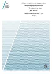 Fordelsen, Hilde Devold (Master thesis; Mastergradsoppgave, 2019-05-14)Målsetningen med min forskning er å bidra til en økt forståelse for hvordan lærere opplever å benytte pedagogisk entreprenørskap i sin undervisning. Jeg ønsket å finne ut om pedagogisk entreprenørskap benyttes i skolen i den grad Kunnskapsdepartementet har uttrykt ønske gjennom strategi- og handlingsplan. Forskningen antyder at Kunnskapsløftet presenterer implisitte føringer for pedagogisk ... -
